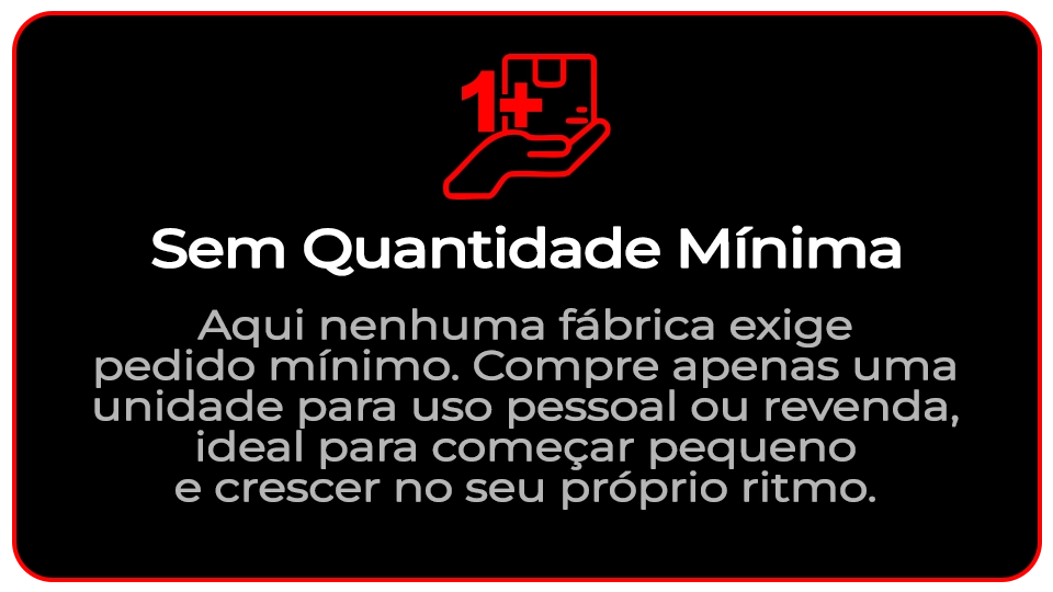 Vamos ensinar-lhe o passo a passo para importar diretamente de fábricas na China e liberaremos para você o acesso a mais de 1500 fábricas de diferentes nichos, como: camisas de times, chuteiras, roupas de grife, bolsas de grife, tênis, bonés, óculos, eletrônicos, itens de decoração e cozinha. Também vamos ensinar você a encontrar fábricas no nicho que desejar e a fazer os contatos mais eficazes e econômicos dentro da China.